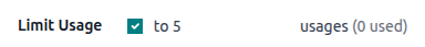 To limit the usage of the coupon, we will check limit usage field and the limit to 5