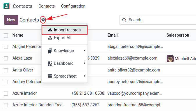 - Navigate to a model (e.g., Products, Contacts, Orders) and switch to List View.