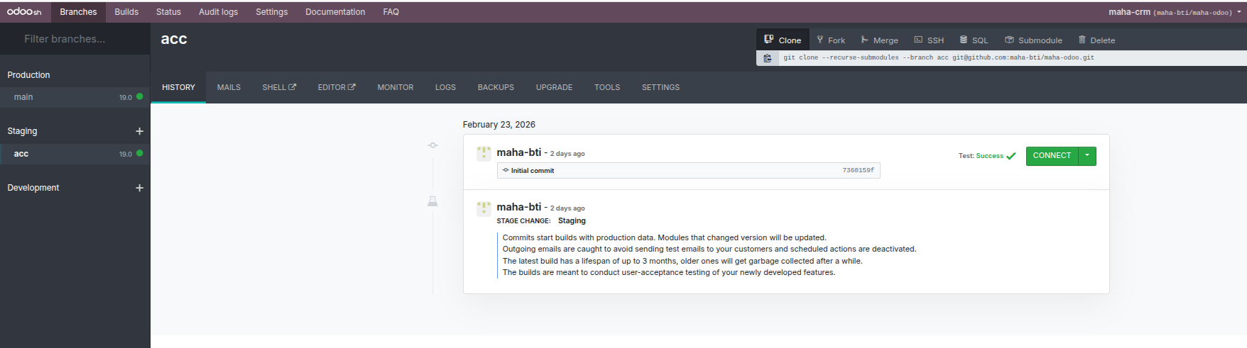 1. Log in to Odoo.sh dashboard