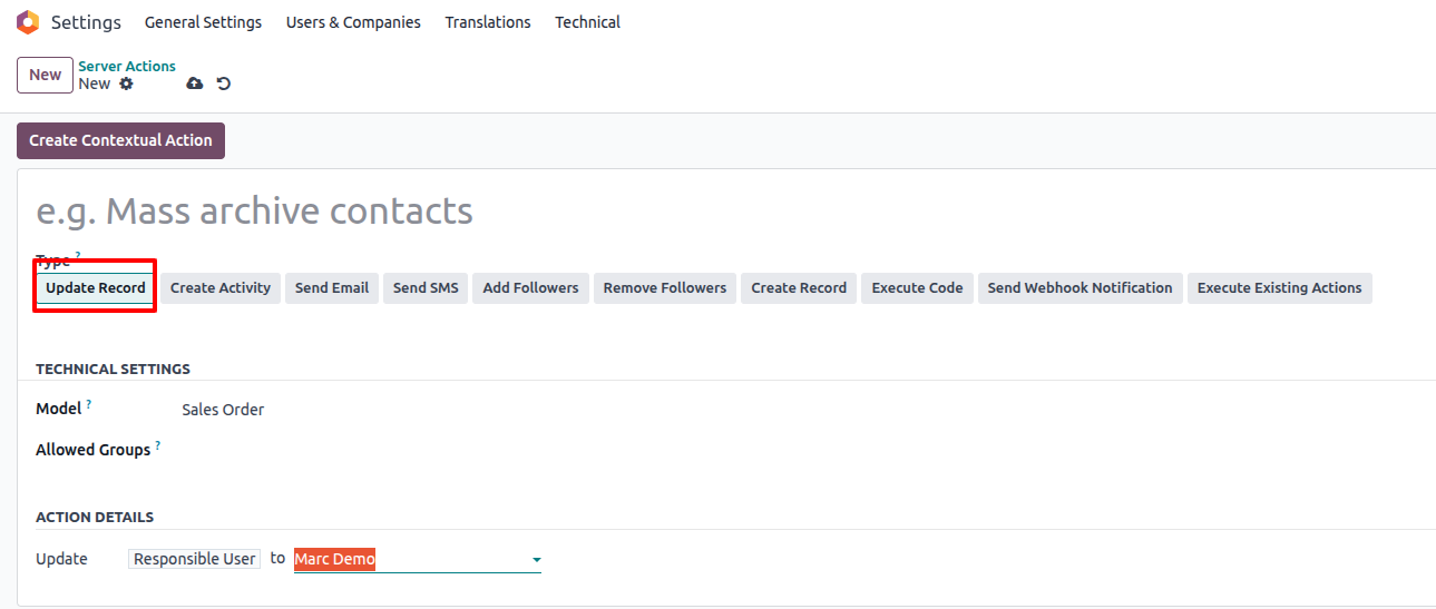 Server Actions in Odoo 17 let you automate tasks through the user interface—no coding needed. This guide walks you through the most common types of Server Actions and shows exactly where to click, with screenshot placeholders to help you recreate the steps visually.