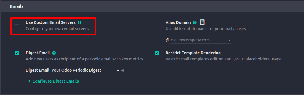 - Check the box for Use Custom Email Servers.