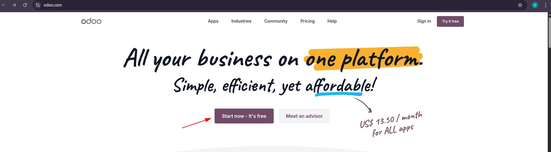 - Open your web browser and navigate to www.odoo.com.