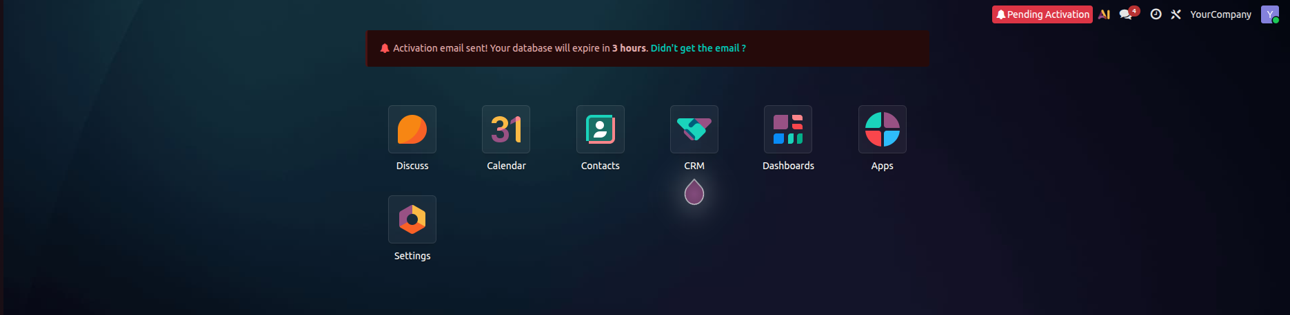 Although you are looking at your dashboard, your database is not fully secure yet. Odoo gives you a strict 4-hour window to verify your email address. If you fail to verify within this timeframe, your database will be automatically deleted.