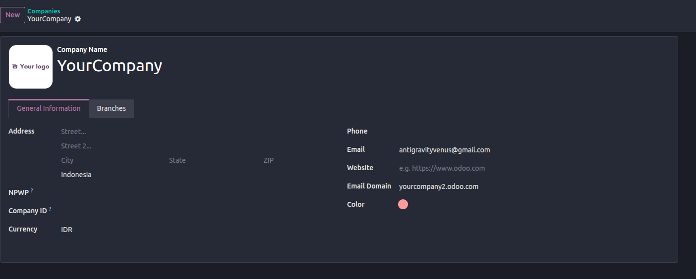- Fill in the full details: Address, Phone, Website, and upload your official Company Logo.